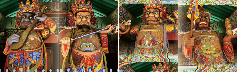 동방 지국천왕(持國天王)은 동쪽을 수호하는 안민(安民)의 신장으로 합격과 지혜를 관장하고, 선한 자에게 상을 내리고 악한 자에게 벌을 주어 항상 인간 세상을 두루 보살피며 국토를 수호하는 천왕입니다.